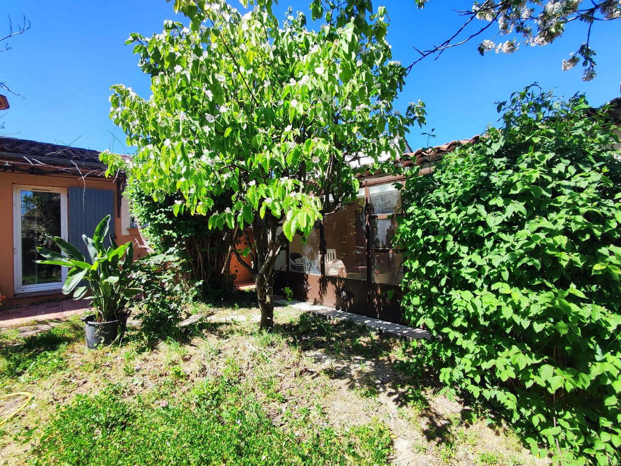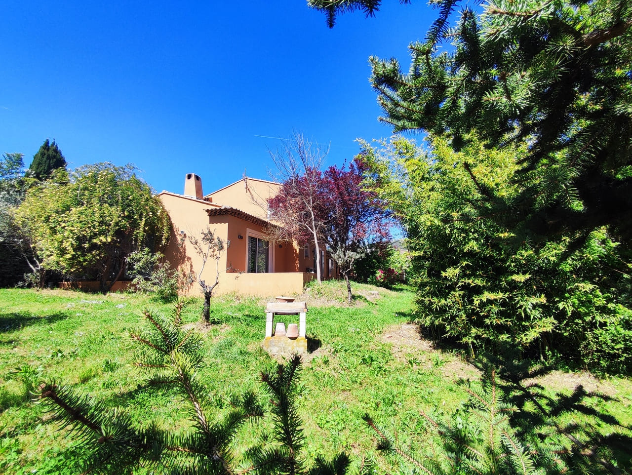 Dans un quartier résidentiel de Gonfaron, villa T5 de 140 m² (édifiée dans les années 2000) avec 3 071 m² de terrain constructible et divisible.